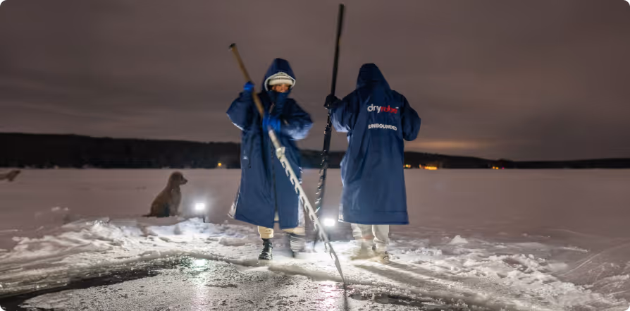 Nick: In Canada, the winter environment is a very real thing. When you exit 1°C water and the air temperature is -15°C, your core temperature continues to plummet. Safety is our priority. The Dryrobe® Advance Long Sleeve has become the unofficial uniform of our retreats because it’s the only thing that provides that immediate, windproof thermal shield.